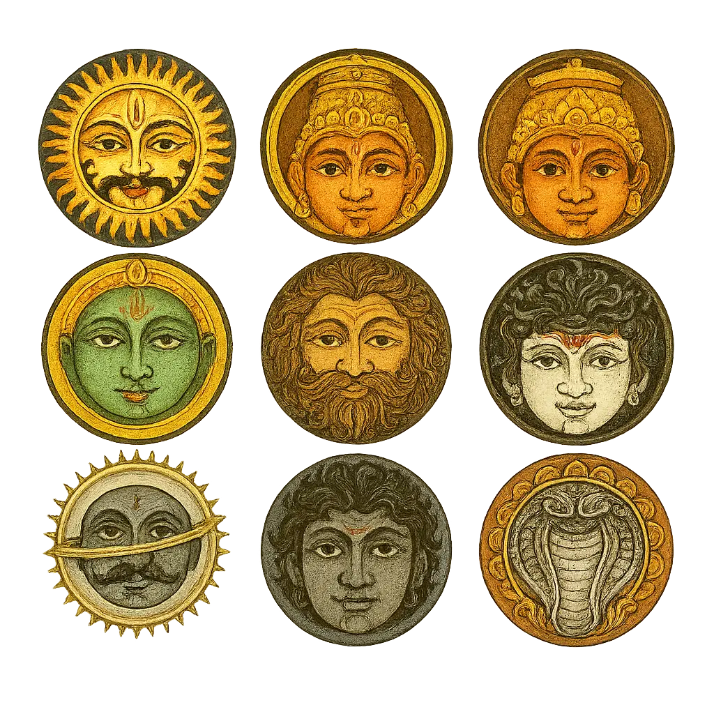 Navagraha Pooja balances planetary energies, removes doshas, and blesses devotees with health, peace, and prosperity.